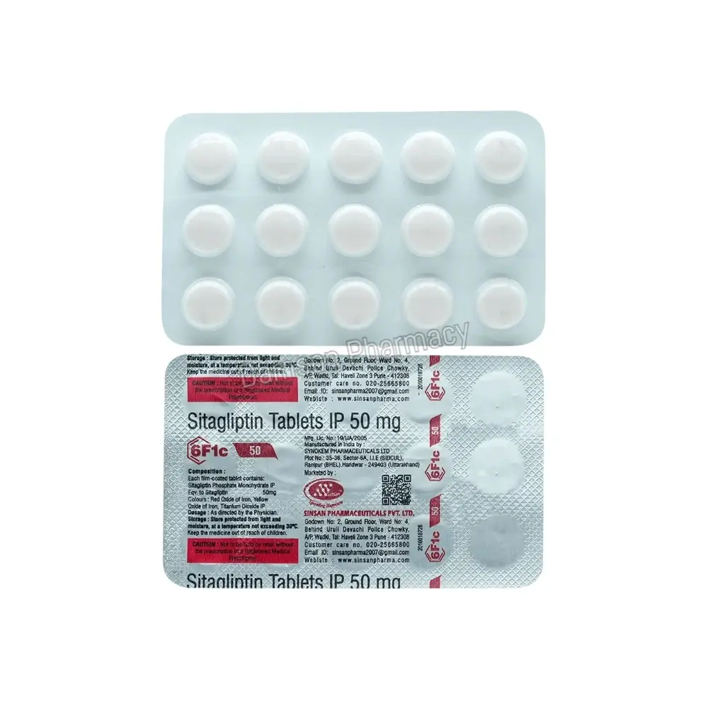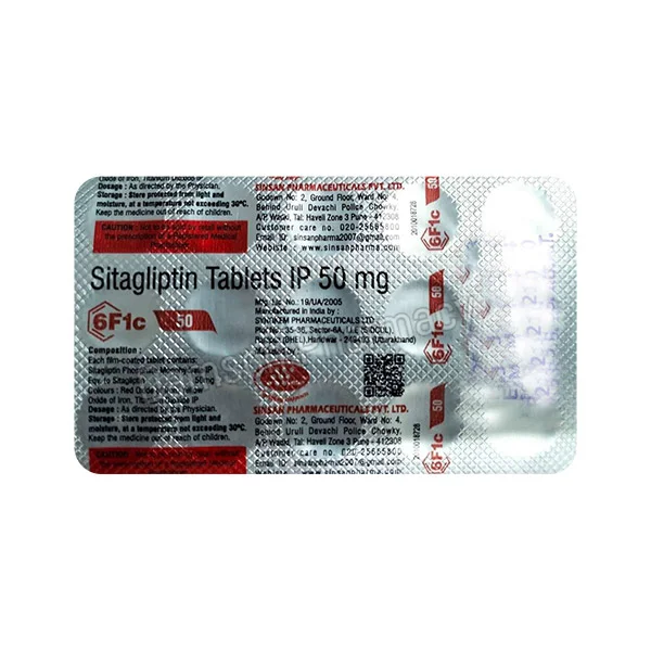 6F1C 50mg Tablet contains Sitagliptin which belongs to the group of medicines called Anti-diabetic drugs. 6F1C 50mg Tablet is used in adults to treat type 2 diabetes alone or along with other anti-diabetic medicines, diet, and exercise.