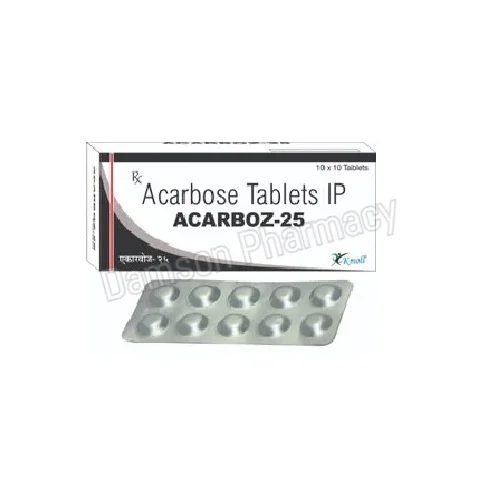 Acarboz 25 mg Tablet is an oral anti-diabetic medication used to manage type 2 diabetes mellitus. It works by slowing down the digestion and absorption of carbohydrates in the intestines, which helps control post-meal blood sugar spikes. The active ingredient in this tablet is Acarbose, a class of drugs known as alpha-glucosidase inhibitors.