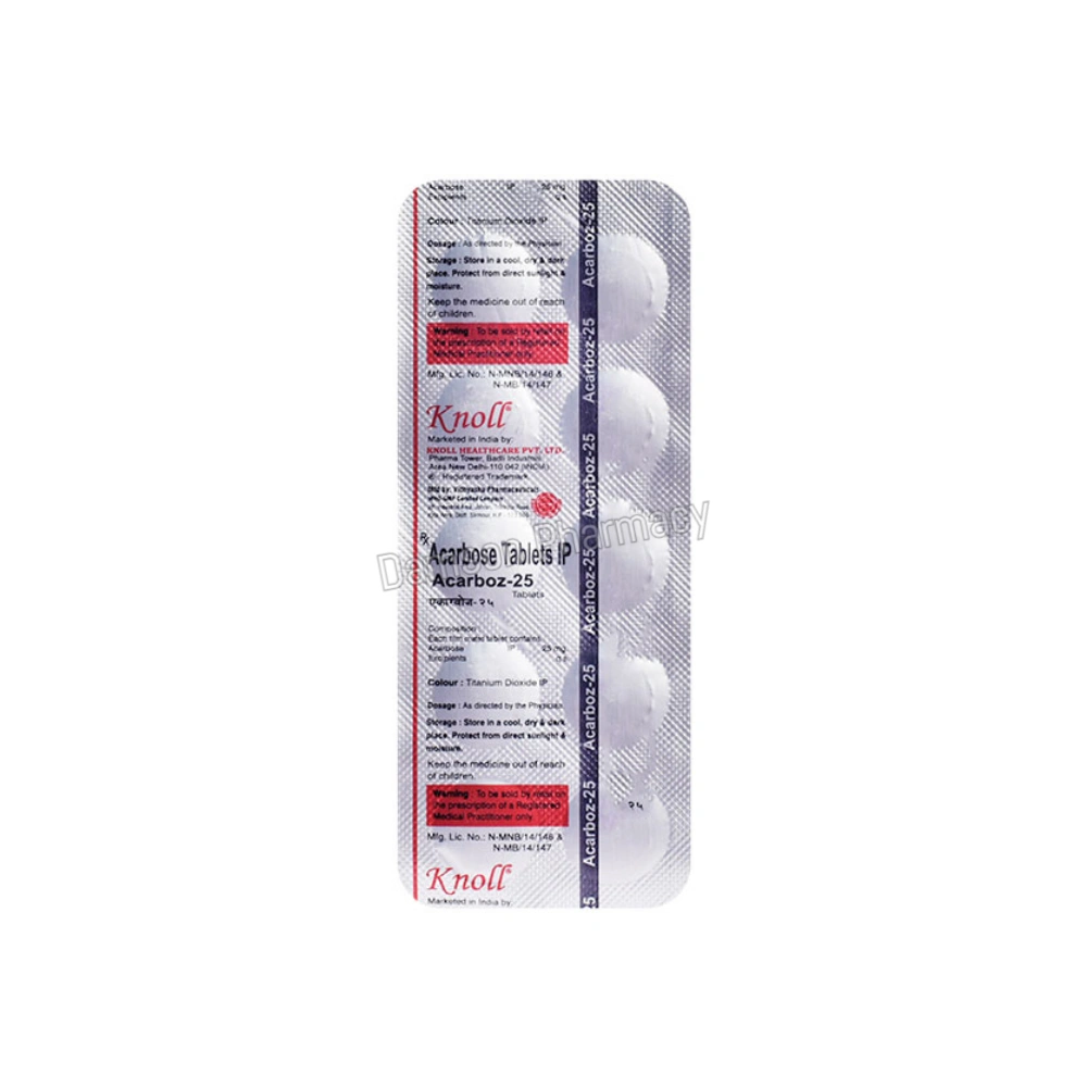 Acarboz 25 mg is typically taken at the start of a main meal. It should be used under medical supervision, especially in patients with kidney or liver conditions. Regular blood sugar monitoring and follow-up with a healthcare provider are essential to ensure its effectiveness and minimize side effects. Acarboz 25mg is manufactured by Knoll Healthcare.