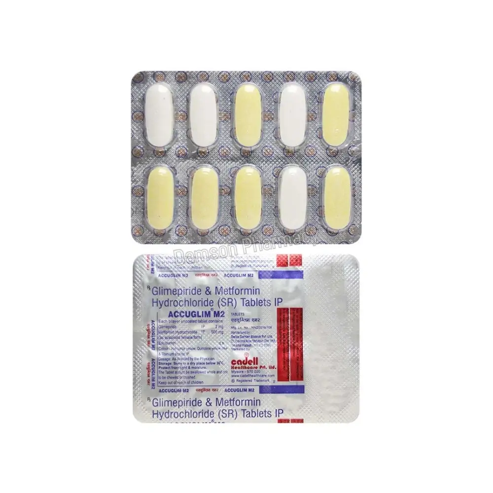 Accuglim M2 tablets are a combination medication used primarily in the management of type 2 diabetes mellitus. Each tablet typically contains two active ingredients: Metformin hydrochloride and Glimepiride. It is typically manufactured by Cadell Healthcare.