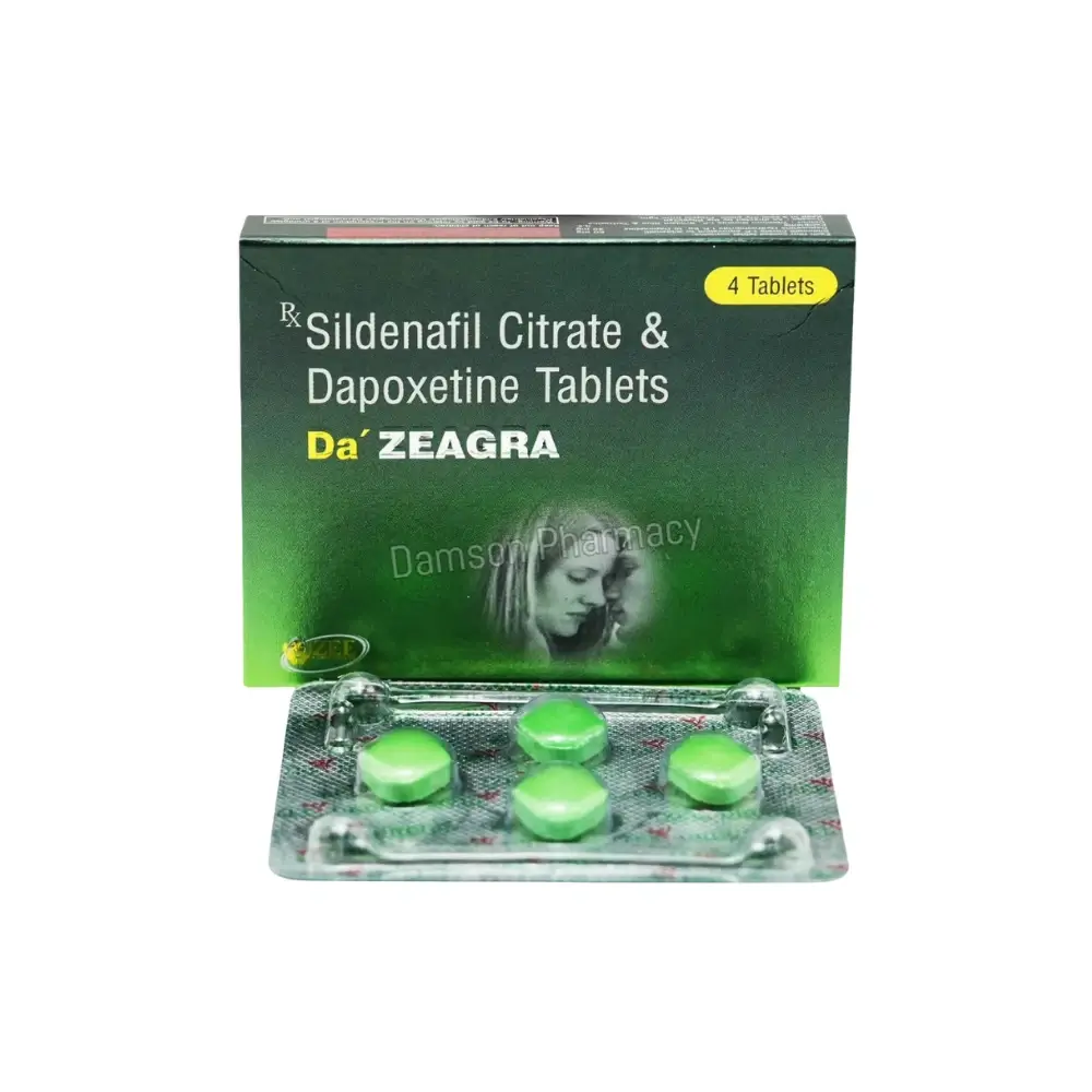 By combining a PDE5 inhibitor with an SSRI, DA’ Zeagra 50/30 mg addresses both erectile dysfunction and premature ejaculation. This dual mechanism supports improved erection quality, better ejaculation control, and overall enhanced sexual performance when taken as prescribed.