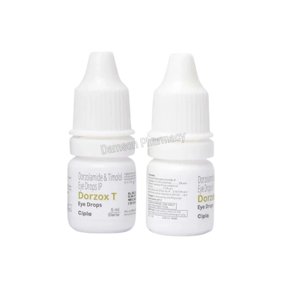 Dorzox T Eye Drop is a combination of two medicines: Dorzolamide and Timolol. Dorzolamide is a carbonic anhydrase inhibitor and Timolol is a beta blocker. They work by decreasing the production of aqueous humour (fluid in the eye), thereby lowering the increased eye pressure.