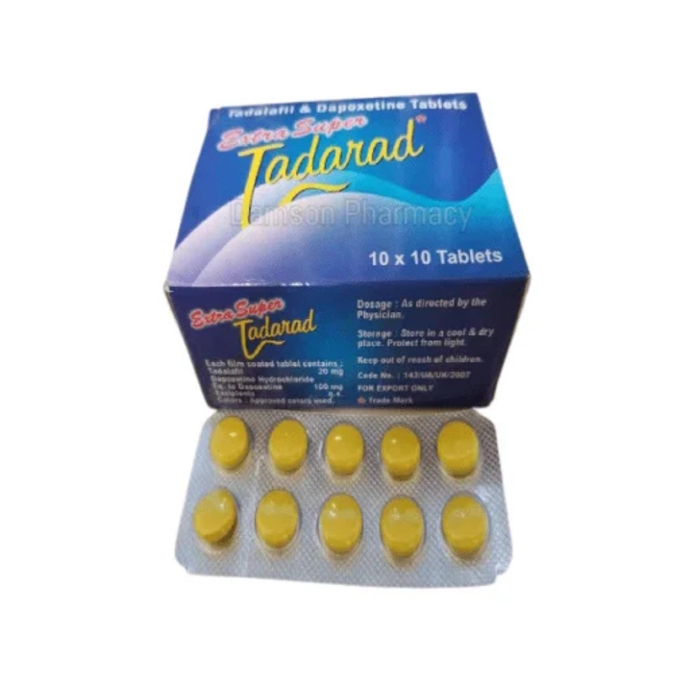 Extra Super Tadarad contains a powerful combination of Tadalafil and Dapoxetine. Tadalafil increases blood flow to the penis by relaxing the blood vessels, which helps in achieving and maintaining a firm erection during sexual activity. This action addresses erectile dysfunction effectively, allowing for improved sexual performance.