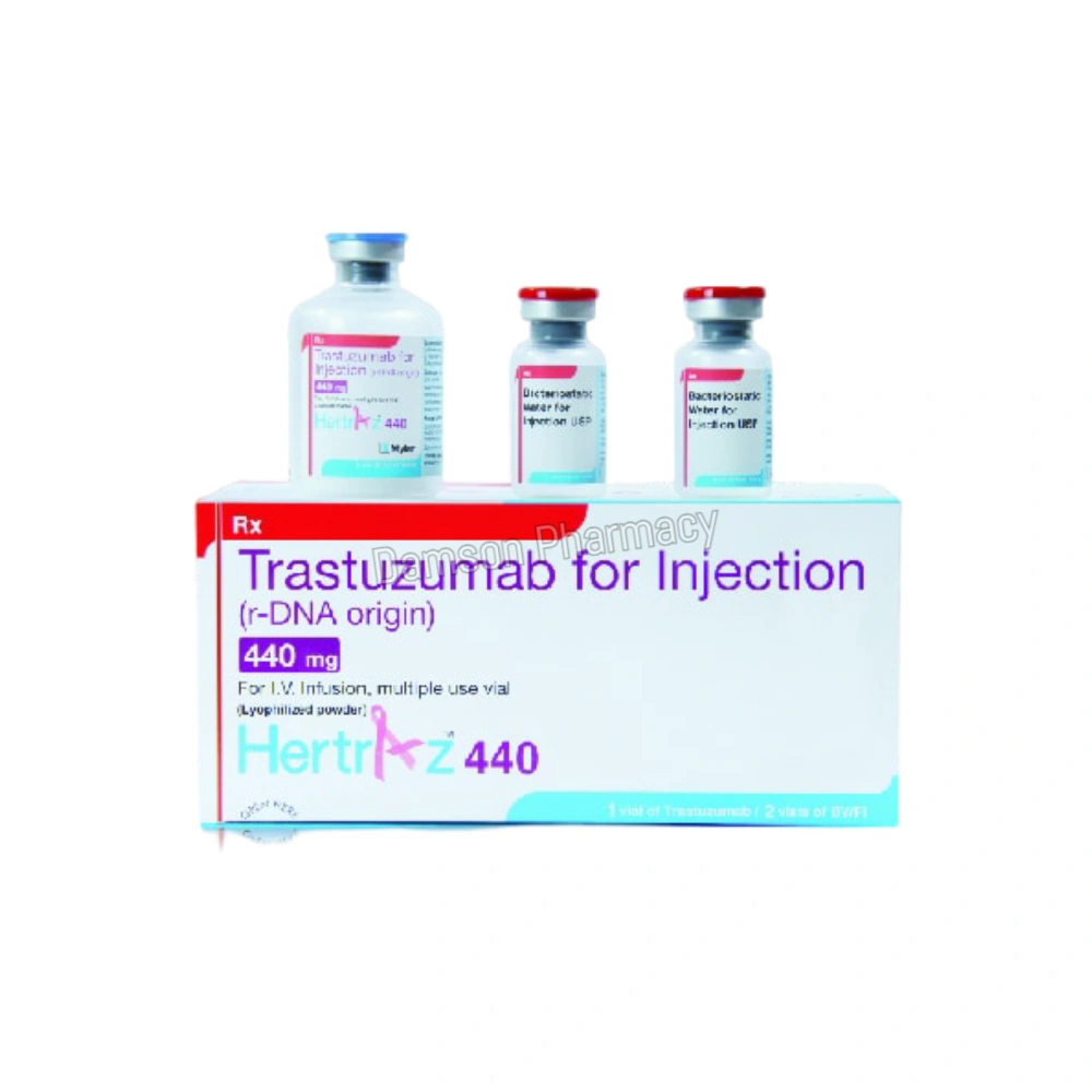 Hertraz 440 mg Injection contains an active ingredient, Trastuzumab, which is used in the treatment of breast cancer and stomach cancer. This medicine is available in various strengths and substitutes & must be given on doctor’s prescription only.
