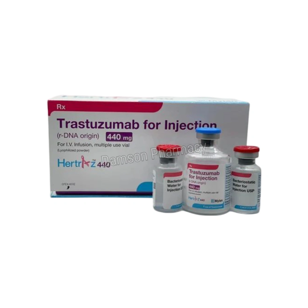 Hertraz 440 mg Injection is a medication used in the treatment of certain types of breast and stomach cancers. It contains trastuzumab, a monoclonal antibody that specifically targets the human epidermal growth factor receptor 2 (HER2). HER2-positive cancers grow more aggressively, and Hertraz helps slow their progression by blocking HER2 receptors and inhibiting cancer cell growth.