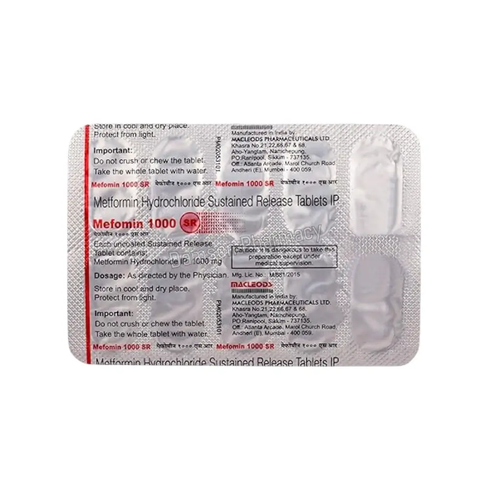 Mefomin 1000 SR Tablets is a medication used primarily in the management of type 2 diabetes mellitus. It contains Metformin hydrochloride as its active ingredient, belonging to the class of drugs known as biguanides. Metformin works by reducing glucose production in the liver and enhancing the body’s sensitivity to insulin, thereby helping to lower blood sugar levels.