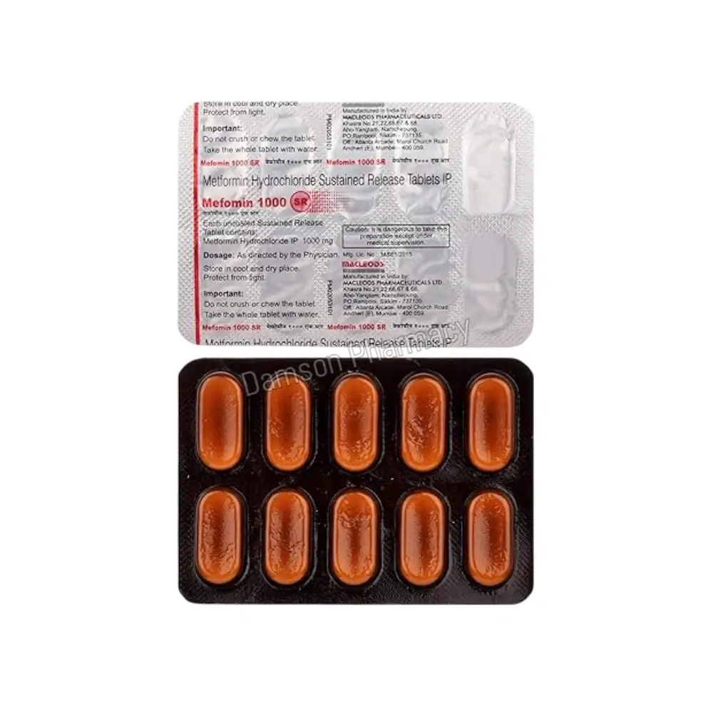 Mefomin 1000 SR Tablets helps lower high blood sugar in people with type 2 diabetes. It reduces glucose production by the liver, decreases glucose absorption from food in the intestines, and improves the body’s sensitivity to insulin.