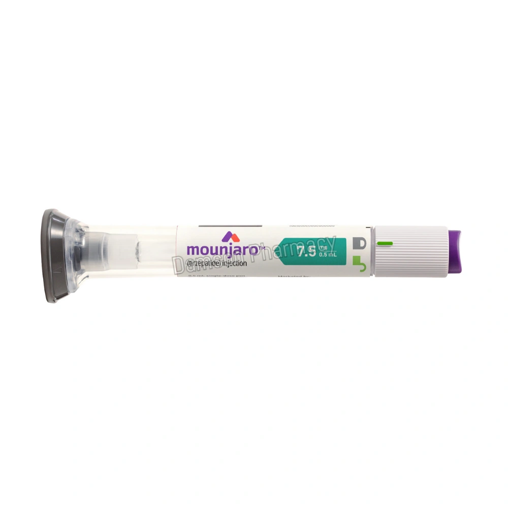 Mounjaro 7.5mg is delivered via a pre-filled, single-dose injection pen, typically administered once weekly under the skin (subcutaneously) in areas like the abdomen, thigh, or upper arm. Its convenient weekly dosing helps improve treatment adherence and lifestyle flexibility.