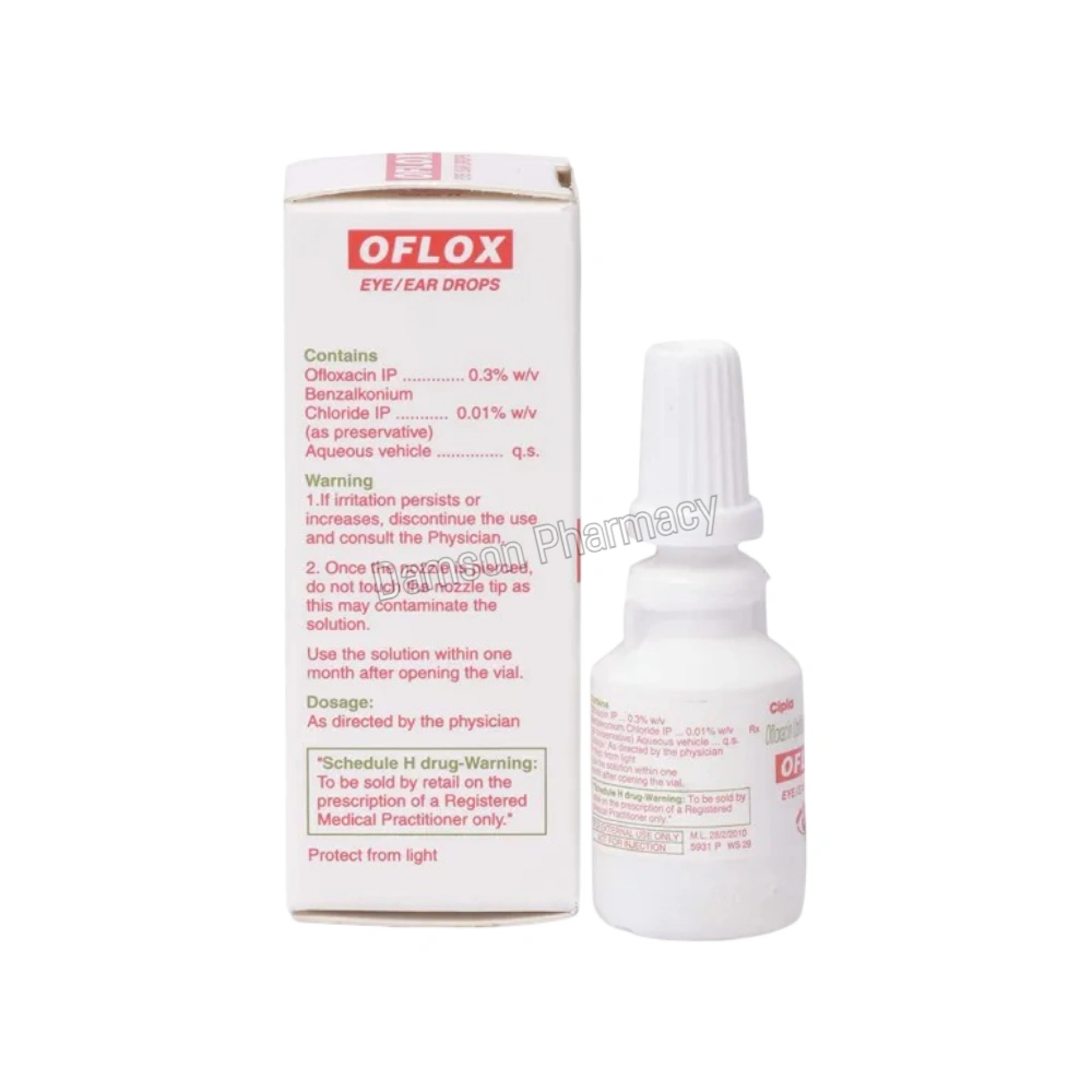 Oflox Eye/Ear Drops 5 ml is a prescription antibiotic formulation widely used to treat bacterial infections affecting the eyes and ears. It contains ofloxacin, a fluoroquinolone antibiotic known for its broad-spectrum action against various infection-causing bacteria.