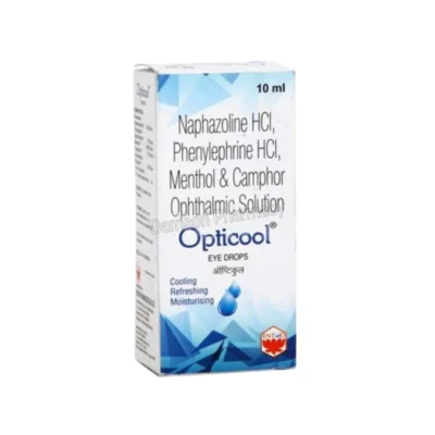 Opticool Eye Drop is a combination of four medicines: Camphor, Menthol, Naphazoline and Phenylephrine, which treats allergic eye disease. Camphor and Menthol provide a cooling effect to the eye. Naphazoline and Phenylephrine are decongestants which work by narrowing blood vessels of the eye to relieve inflammation (redness and swelling).