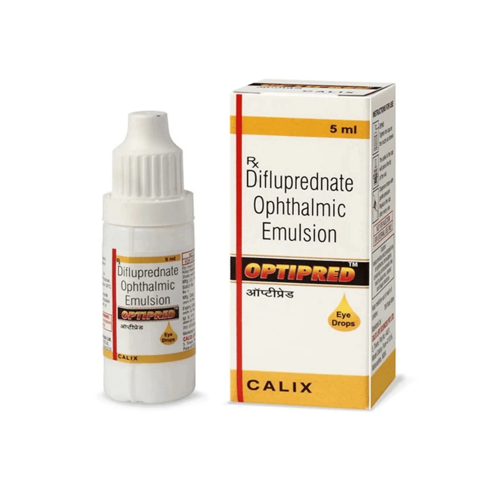 Optipred Eye Drops contain Difluprednate, a corticosteroid that reduces inflammation in the eyes. It works by blocking the release of substances that cause swelling, redness, and irritation, helping to relieve symptoms of eye conditions like conjunctivitis, uveitis, and post-surgical inflammation.