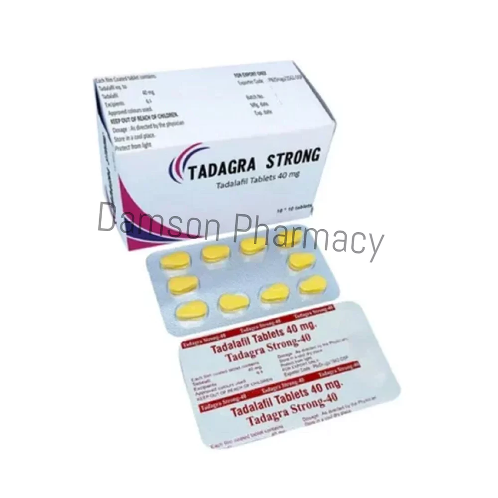 Tadagra Strong 40 mg is a potent oral medication designed to treat erectile dysfunction (ED) in men. Its active ingredient, Tadalafil, is a phosphodiesterase type 5 (PDE5) inhibitor that enhances blood flow to the penis during sexual arousal, facilitating a firm and lasting erection.
