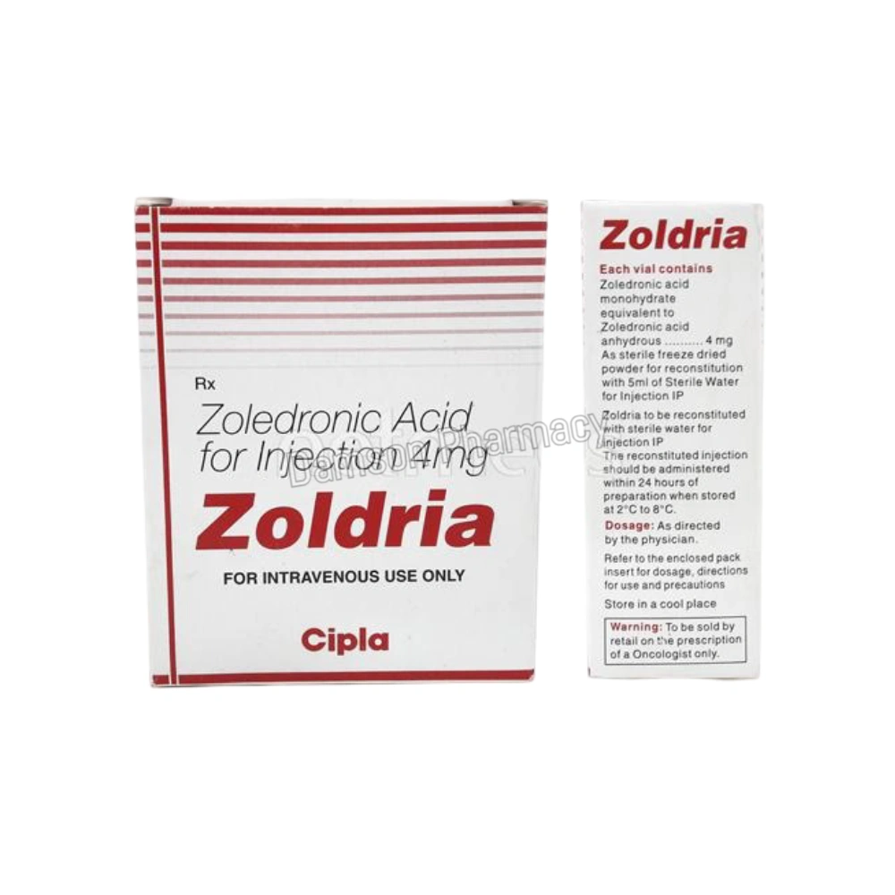 Zoldria 4mg Injection is typically administered as a slow intravenous infusion over at least 15 minutes, depending on the patient’s condition. For the treatment of bone-related complications in cancer, the usual dosage is 4mg every 3 to 4 weeks, along with calcium and vitamin D supplements to maintain bone health.
